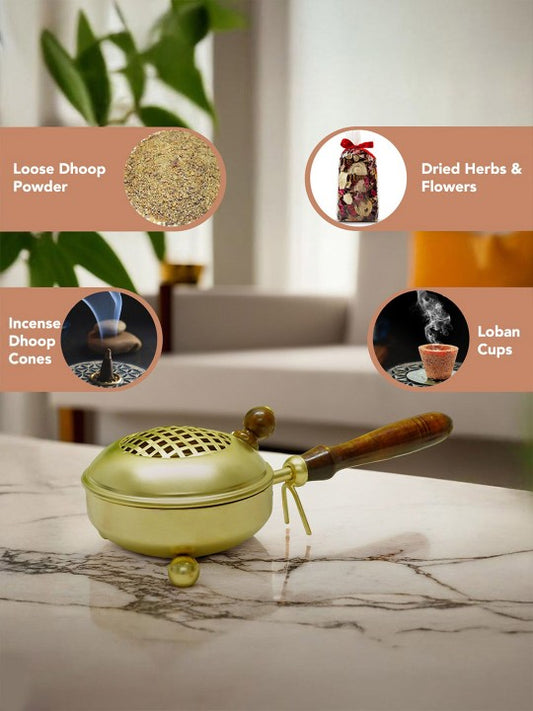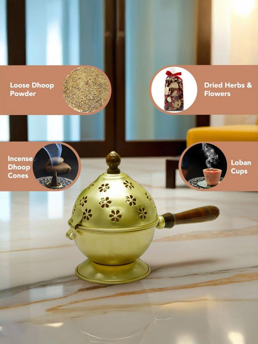 De Casa Decor Brass Dhuna Loban Burner Dhooni Dhoop Dani Dhuni Bakhoor Holder | Loban Burner | Incense Holder, Brass